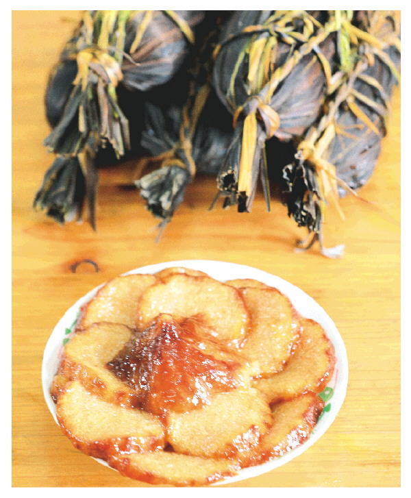 黄茅粽的用料很讲究,一是用本地产的上等糯米,二是稻草。先把稻草烧成灰,然后用稻草灰制作灰水。用灰水将糯米浸泡一个晚上。