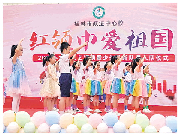 孩子们正在舞台上表演。 (桂林市跃进中心校供图)