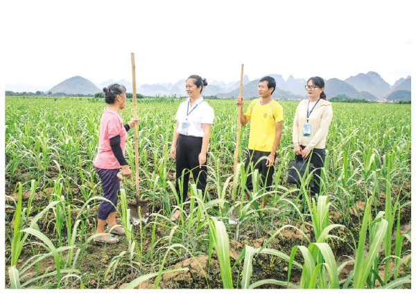 阳朔县纪委监委组织纪检监察干部深入田间地头,聚焦乡村特色产业发展、惠农补贴发放、农村“三资”管理等开展监督检查,将监督触角向农村基层延伸。图为近日该县纪检监察干部在福利镇青鸟村甘蔗种植基地了解相关情况。