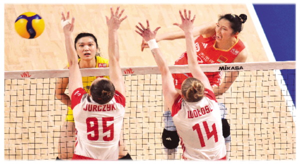 当日,在世界女排联赛中国香港站比赛中,中国队3比0战胜波兰队,取得四连胜。新华社记者卢炳辉 摄