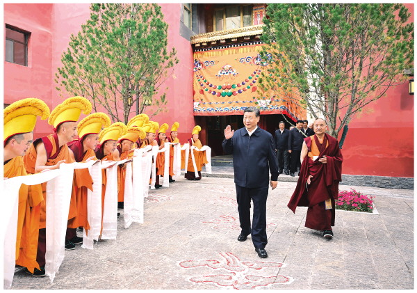 6月18日至19日,中共中央总书记、国家主席、中央军委主席习近平在青海考察。这是18日下午,习近平在位于西宁市城中区的宏觉寺考察。 新华社记者谢环驰 摄