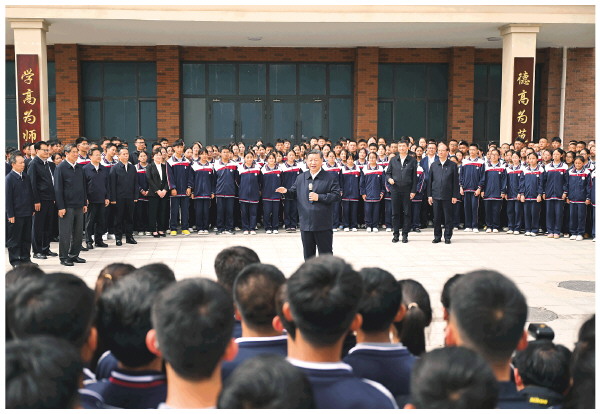 18日下午,习近平首先来到果洛西宁民族中学考察。这是一所隶属于果洛藏族自治州的寄宿制中学,由上海市投资援建。习近平听取上海等东部地区援助青海教育工作和学校建设情况介绍,详细询问学生构成、课程设置、体育锻炼、普通话水平等情况,走进食堂、宿舍楼察看学生就餐和住宿条件,嘱咐食堂工作人员一定要确保学生饮食安全、营养可口。之后,他来到高一(1)班教室,观摩“新时代、新家乡”主题思政课。了解到学校将思政课内容融入日常教学,听了孩子们讲述新时代家乡的可喜变化,看了孩子们的画作,习近平十分高兴。他说,包括教育在内的东西部协作和对口支援取得显著成效,充分彰显了中国共产党领导和中国特色社会主义制度的优势,充分体现了中华民族大家庭的温暖。要把铸牢中华民族共同体意识作为学校思政课的一个重点,讲好中国共产党和中国特色社会主义的故事,(下转第七版)