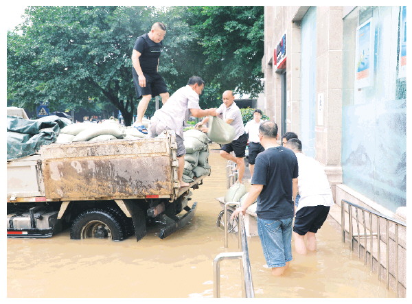 汛情就是命令。6月19日中午,分行本部大楼周围洪水水位上涨迅速,分行闻“汛”而动,领导班子靠前指挥,带头察看水情,督导落实洪灾应急处置,在确保人身安全的前提下,组织员工利用挡水板、沙袋等物资在地库和营业厅门口筑牢防护屏障,撤离转移财产物资,保障尾箱凭证、机器设备、材料档案等安全。