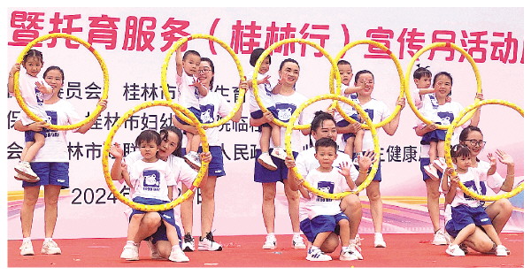 本报讯(记者张婷婷 文/摄)6月29日,2024年广西“生育友好”暨托育服务(桂林行)宣传月活动启动仪式在临桂区金山广场举行,通过颁奖、授牌、义诊、文艺表演等形式,调动全社会关心支持和参与的积极性,推动托幼服务高质量发展。