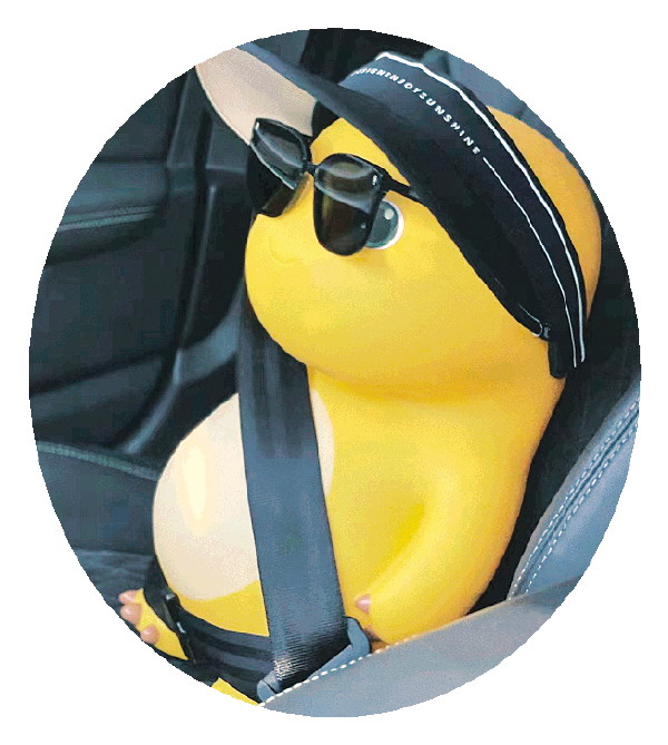 年轻人将玩具“小奶龙”摆放在车辆副驾上,让其陪伴自己。(图片来自网络)
