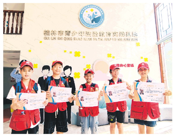 7月6日上午,40余名桂林日报社小记者在市青少年法治教育实践基地开展“预防霸凌 护‘未’成长”实践活动。
