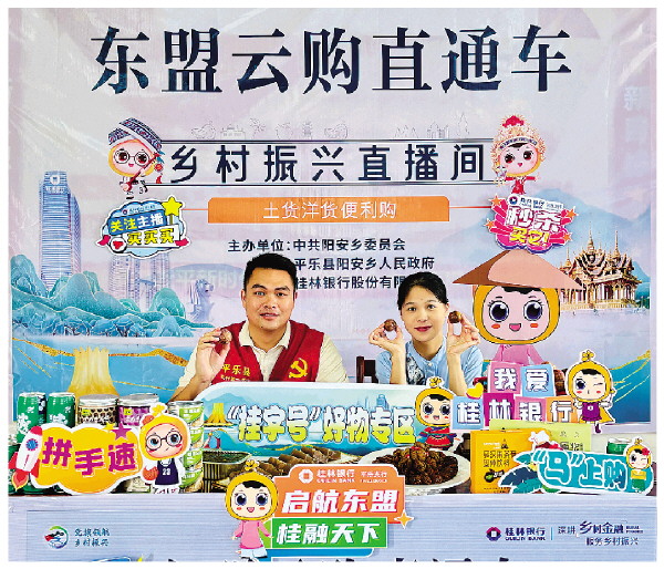 “农货”要出村,思维要破圈。为减少灾情损失、推动灾后重建,阳安乡政府决定与桂林银行联合开展“东盟云购直通车 乡村振兴直播间”直播带货活动,专门销售当地李果及李果制品,利用直播平台,为当地李果寻找新的销售渠道。