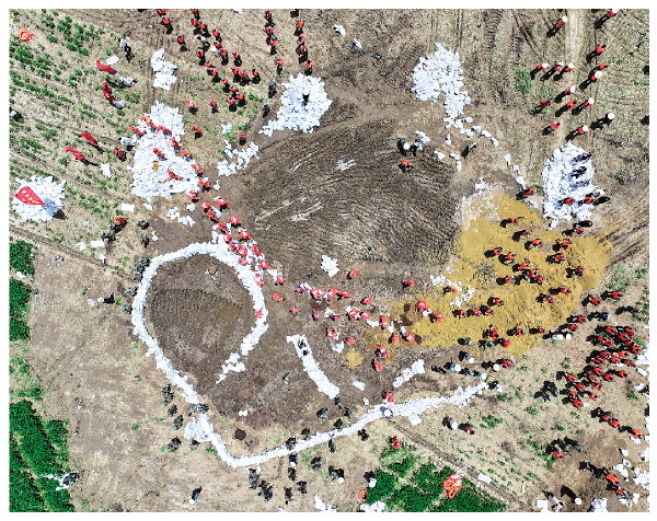 7月8日,抢险人员在钱团间堤管涌险情现场进行紧急处置(无人机照片)。