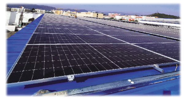 走在工厂内,记者抬头看到了面积庞大且规划合理的太阳能光伏板。据了解,这是该公司利用31695平方米的闲置面积实施的3843.95kWp分布式光伏项目。该项目每年可发电约260万度,可节省130.08吨标准煤,减轻排放温室效应气体二氧化碳360.25吨,减少排放大气污染气体二氧化硫约10.84吨、氮氧化物约5.42吨。“这个项目不仅能够大幅降低我们的用电成本,还能每年节约大约140万元的能源费用,实现了经济效益与环境效益的双赢。”周强告诉记者。
