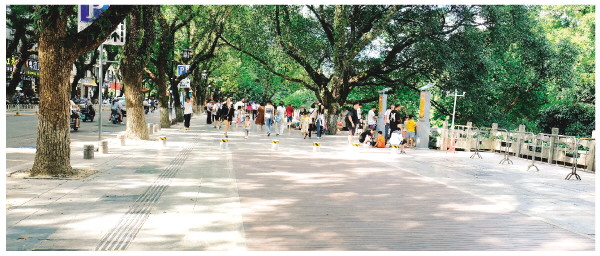本报讯(记者张婷婷 文/摄)“这里拆除了绿化带,铺上了木栈道,不仅视野开阔心旷神怡,人流高峰出行也更方便安全了,真是太赞啦!”眼下正值桂林旅游旺季,象山公园2号门出口所在的滨江路人行道焕然一新,路过的市民游客都忍不住驻足欣赏并称赞一番。