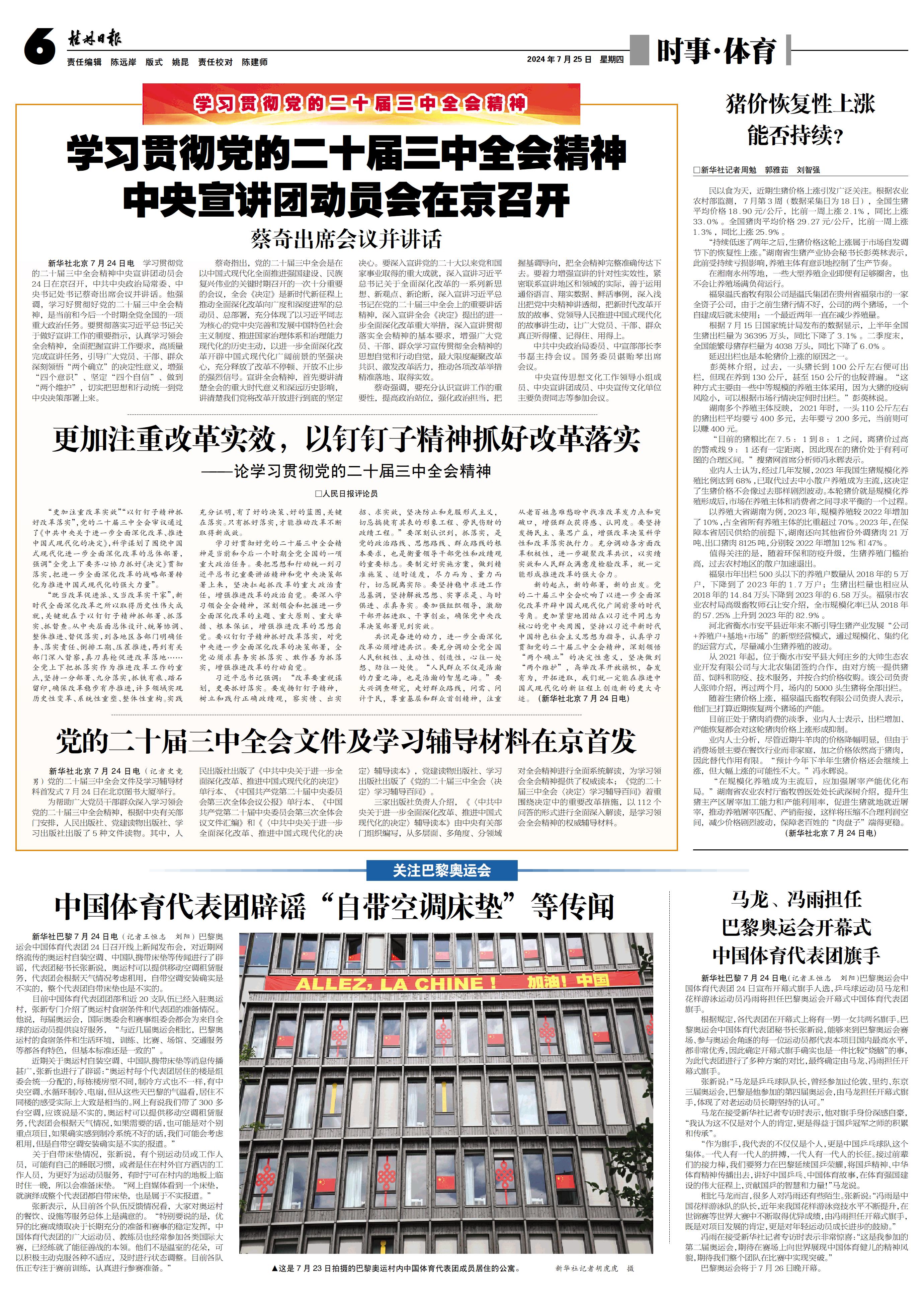 目前中国体育代表团团部和近20支队伍已经入驻奥运村,张新专门介绍了奥运村食宿条件和代表团的准备情况。他说,每届奥运会,国际奥委会和赛事组委会都会为来自全球的运动员提供良好服务,“与近几届奥运会相比,巴黎奥运村的食宿条件和生活环境,训练、比赛、场馆、交通服务等都各有特色,但基本标准还是一致的”。