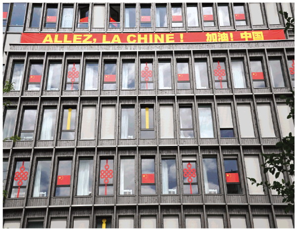 ▲这是7月23日拍摄的巴黎奥运村内中国体育代表团成员居住的公寓。 新华社记者胡虎虎 摄