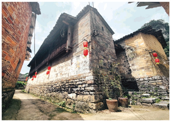 明代时期的广西动乱频发,在官方的记载中,把大量不受约束的人口称为瑶僮,并常常把地方发生的动乱称为“瑶乱”或“僮乱”。动乱自然也波及了地处偏远山区的褚村。村中古寨墙的一方碑刻上这样写道:“成化、弘治年流移野贼连年出劫,杀人放火,烧毁房仓,苦情难尽。”所以到嘉靖庚寅年(1530年)仲冬,“是以村主说计,众等大小各用力出办钱米,命匠取石。……围砌石墙、门、路及绕山墙垣”。从碑铭得知,村人在村中首富褚倾会的倡议下集资修筑寨墙,并于嘉靖十年(1531年)建成。