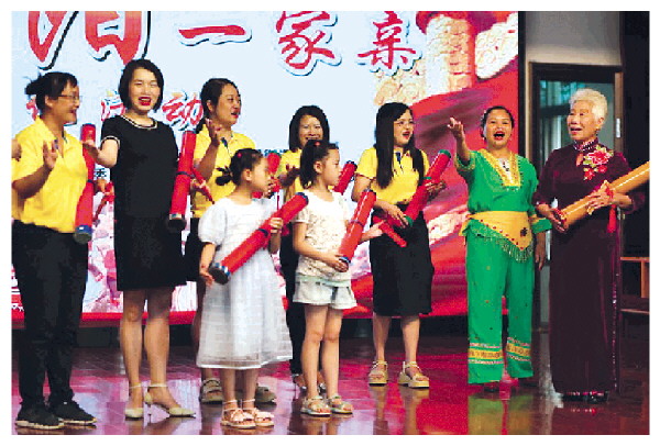 ▲在阳家山社区首届“同心向阳一家亲”文体节上,渔鼓传承人与居民在唱渔鼓。 记者韦莎妮娜 摄