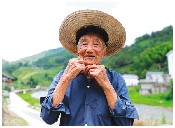 □本报记者李忠波 通讯员潘志祥 彭媛 文/摄 在龙胜各族自治县伟江乡中洞村中洞三组,邓玉宽老人以百岁高龄,成为村中那段传奇历史的见证者——他小时候亲眼见过红军队伍从家门前走过,那画面至今仍深深烙在他的记忆里。作为一名拥有长达64年党龄的老党员,他始终坚守着党的信仰和初心。尽管岁月流逝,年事已高,邓玉宽老人依然保持着良好的精神状态,腰板挺直,步履稳健。 盛夏七月的一天,记者于上午10时许抵达中洞村,恰遇邓玉宽老人的小女儿邓荣花携两个女儿从桂林回来看望父亲。步入邓玉宽老人家中,大女儿邓荣英已在家中等候。不一会,戴着帽子的邓玉宽老人从房间快步走出。听到小女儿熟悉的声音,邓玉宽老人端详着小女儿和两个外孙女,脸上洋溢着欣喜的笑容。 “请坐,请坐!”邓玉宽老人热情地招呼记者落座。此时,邓荣英从隔壁自己家端出热腾腾的油茶款待大家。我们开始听邓玉宽老人缓缓讲述他百年来的经历。 邓玉宽老人1923年12月出生在大山里的一个贫苦家庭,有一个姐姐和三个妹妹。年少时,他便跟随姐夫上山采摘桐籽制成桐油,然后肩挑着走上好几天的路去桂林售卖,以换取生活所需。 “我十一岁那年,听到有军队进村。当时害怕极了,也跟着村里人跑进山里面躲了。我在山上躲了一天一夜。没有东西吃太饿了,只能壮着胆子回家找东西吃。红军见到我说不要跑、不要怕,我们是红军,打富救贫的。一个红军还从自己的布袋中倒出炒米给我充饥。那时,我几天几夜亲眼看见红军经过我家门前。”回忆起小时候碰到红军的场景,邓玉宽老人仍历历在目。 邓玉宽老人20岁时加入了民兵队伍,后任民兵队长、生产队队长等职。他带领村民修筑河堤、开垦田地。1960年,因表现突出,邓玉宽成为村里首批党员。入党后,他更加努力地工作。1970年,他参与红三四水渠的修建,水渠修好后,他在那里担任领导职务。后来,他被调至林场任职四年。在分田到户政策实施后,他便返回村里务农。 邓荣英今年76岁,她回忆道:“小时候家境贫寒,父母含辛茹苦养育我们兄弟姐妹五个。我们长大后,家境逐渐改善。我成家后就住在父母隔壁。父母年迈时两人自己居住,有时间仍帮我们照看孩子。母亲去世后,父亲才一个人独居。他喜欢自己住自己煮,生活自理。前些年父亲还能到山上打柴,这几年我和弟弟有空就去弄些柴放到父亲家里。我还在父亲门前种了许多他爱吃的瓜果蔬菜。前年父亲生病后,视力和听力逐渐下降。” 邓荣花说:“小时候,父亲常年在外劳作,我和父亲见面的机会不多。长大后,我嫁到外乡,回家的次数也少了。这次趁着暑假,我特意带着孩子回来看看父亲。” 邓荣英透露,以前村里召开党员大会时,父亲总是积极参加。在建党100周年的时候,邓玉宽老人荣获了“光荣在党50年”纪念章。现在每年父亲仍按时交党费。现在他行动不便去不了,就让她帮把钱带去村委会。 “跟着共产党走,我们的农村如今旧貌换新颜,生活发生翻天覆地的变化。共产党的好,千言万语都讲不完。”谈及农村以前和现在的变迁,邓玉宽老人由衷地感慨道。