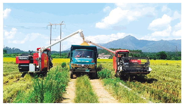 机械化作业让以往“费时”的收割工作变得轻松。近年来,溶江镇大力推动水稻耕种全程机械化,大大提高水稻生产效率,降低成本。“现在种植水稻全程机械化,从水稻育秧、耕田插秧、无人机质保机收,还有机器烘干,包括大米加工包装都是机械化操作,每亩地节省成本大概500元。”半圩村委种植养殖合作社负责人莫金平说。