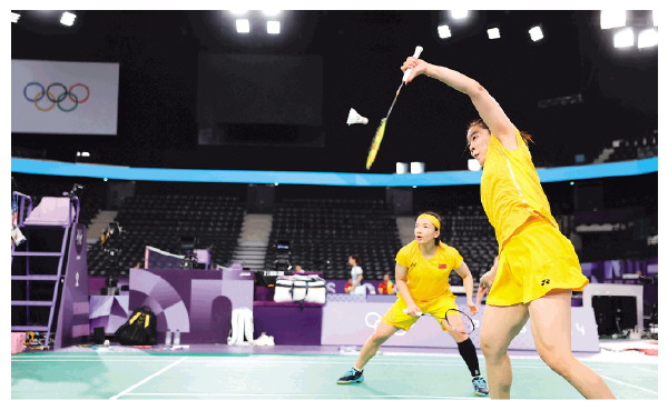 ◤7月25日,中国队选手陈清晨(左)/贾一凡在赛前训练中。 新华社记者陈斌 摄