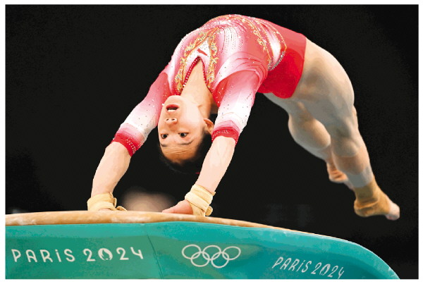 ▲7月25日,中国队选手欧钰珊在跳马项目训练中。 新华社记者程敏 摄