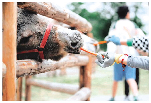 ▼喂喂公园里的动物,放慢忙碌的脚步,治愈心灵。 记者苏展 摄