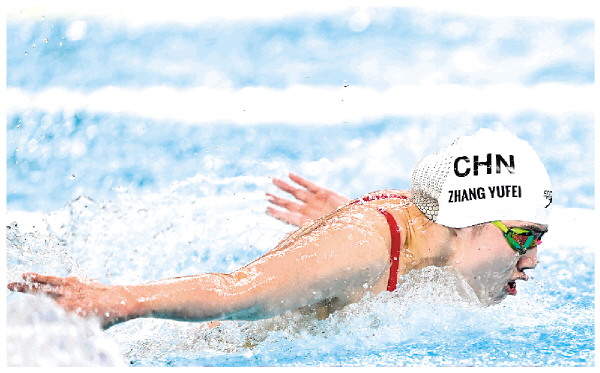 ▼7月28日,季军中国选手张雨霏在比赛中。