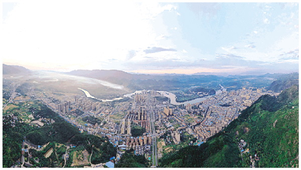 俯瞰全州县城北新区,犹如一只展翅高飞的“雄鹰”,城市建筑错落有致,美景如画(拍摄于7月21日)。