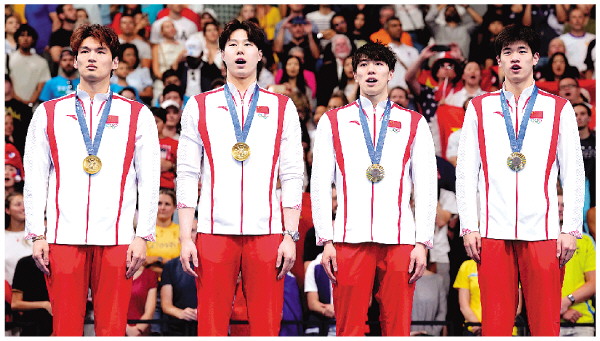 这个项目历来是美国队的“地盘”。自1960年该项目“入奥”以来,除了未参赛的1980年奥运会,美国队15次参赛全部夺冠。而中国队自1984年洛杉矶奥运会以来,历史最好成绩是在东京奥运会上名列第八。但决赛中,徐嘉余(仰泳)、覃海洋(蛙泳)、潘展乐(自由泳)都在各自的泳姿拼得最强棒,临时顶替蝶泳头号人选王长浩上场的是孙佳俊,他在第三棒顶住了压力,竭尽全力为潘展乐在最后一棒强力反超留下了余地。