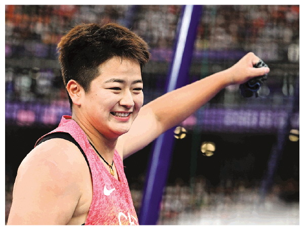 8月6日,中国选手赵杰在比赛中。 当日,巴黎奥运会田径女子链球决赛在法兰西体育场举行,赵杰第二次试投就掷出74米27的成绩,收获一枚铜牌。新华社记者宋彦桦 摄