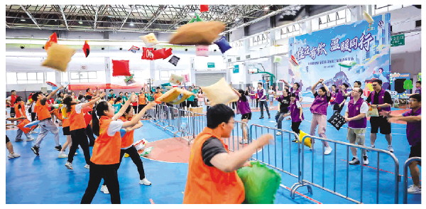 ◤“枕头大战”游戏现场。