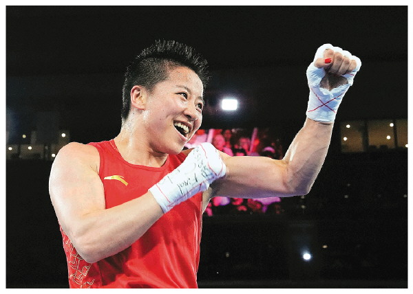 ▲8月9日,中国选手吴愉夺冠后庆祝。