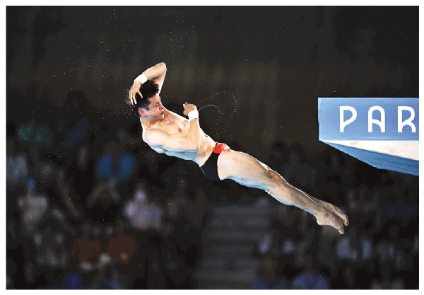 当日,在巴黎奥运会跳水项目男子10米跳台决赛中,中国选手曹缘夺得冠军。 新华社记者王鹏 摄