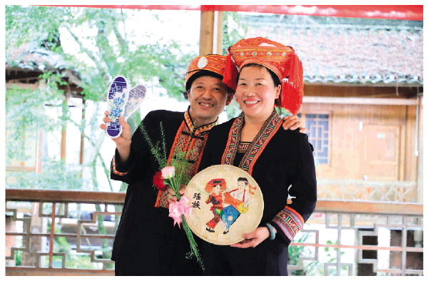 在体验手工艺传承环节,男女老少兴高采烈地体验了一把兰田瑶族乡老一辈在七夕佳节表达爱意的传统习俗——妻子亲手缝制鞋垫赠予丈夫,丈夫则以毛笔书写祝福语,或在竹编上作画回赠妻子。这些看似普通的互赠礼物,在这个浪漫的节日,显得温馨而独特。