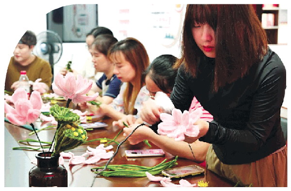 在传统七夕节到来之际,秀峰区甲山街道阳江社区联合大党委共建单位开展了一场别开生面的清廉主题活动。大家通过上清廉党课、观看清廉影片、制作莲花花束,感悟清廉文化内涵,营造崇廉、尊廉的浓厚氛围。图为青年党员正在动手制作莲花花束。