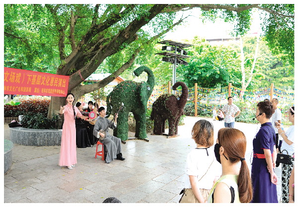 广西濒危剧种(文场戏)下基层文化惠民演出引市民游客点赞