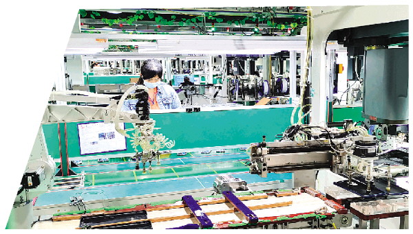 在桂林领益制造有限公司生产线,大量使用了自动化、智能化设备。记者徐莹波 摄
