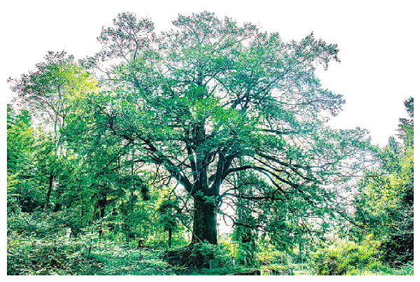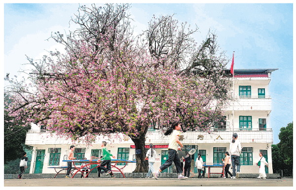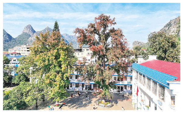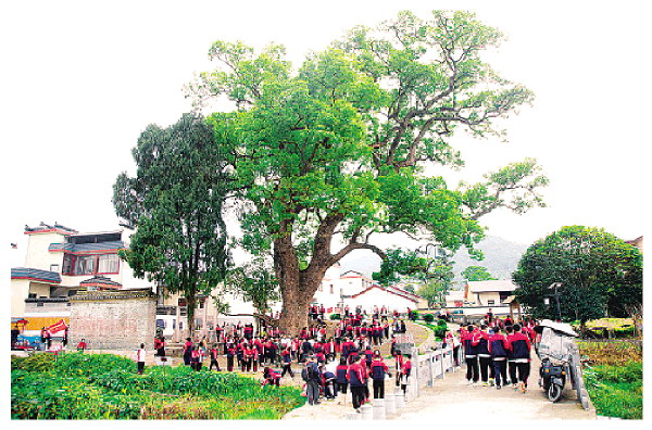 ◤桥头小学校园里的古枫香。 谢一丹 摄