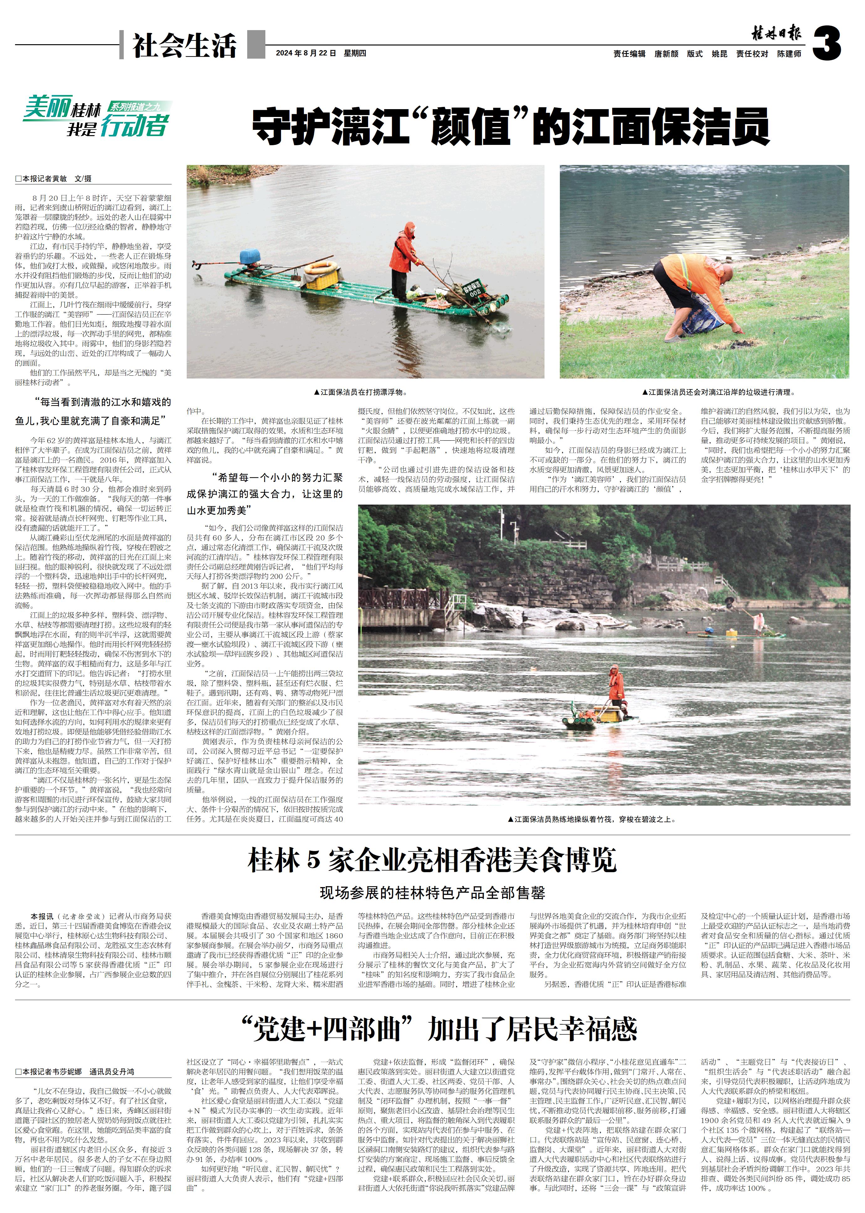 黄刚表示,作为负责桂林母亲河保洁的公司,公司深入贯彻习近平总书记“一定要保护好漓江、保护好桂林山水”重要指示精神,全面践行“绿水青山就是金山银山”理念。在过去的几年里,团队一直致力于提升保洁服务的质量。