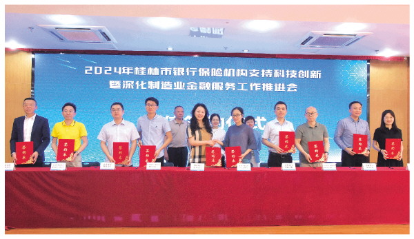 5月,由国家金融监督管理总局桂林监管分局、桂林市科学技术局、桂林市工业和信息化局主办,建行桂林分行承办的桂林市银行保险机构支持科技创新暨深化制造业金融服务工作推进会在桂林市七星区创意大厦召开,桂林市23家银行、保险机构以及超30家科技型企业代表参会。会议现场,建行桂林分行等15家银行机构代表分别与15家科技型企业代表进行授信签约仪式,达成授信意向金额超17亿元。