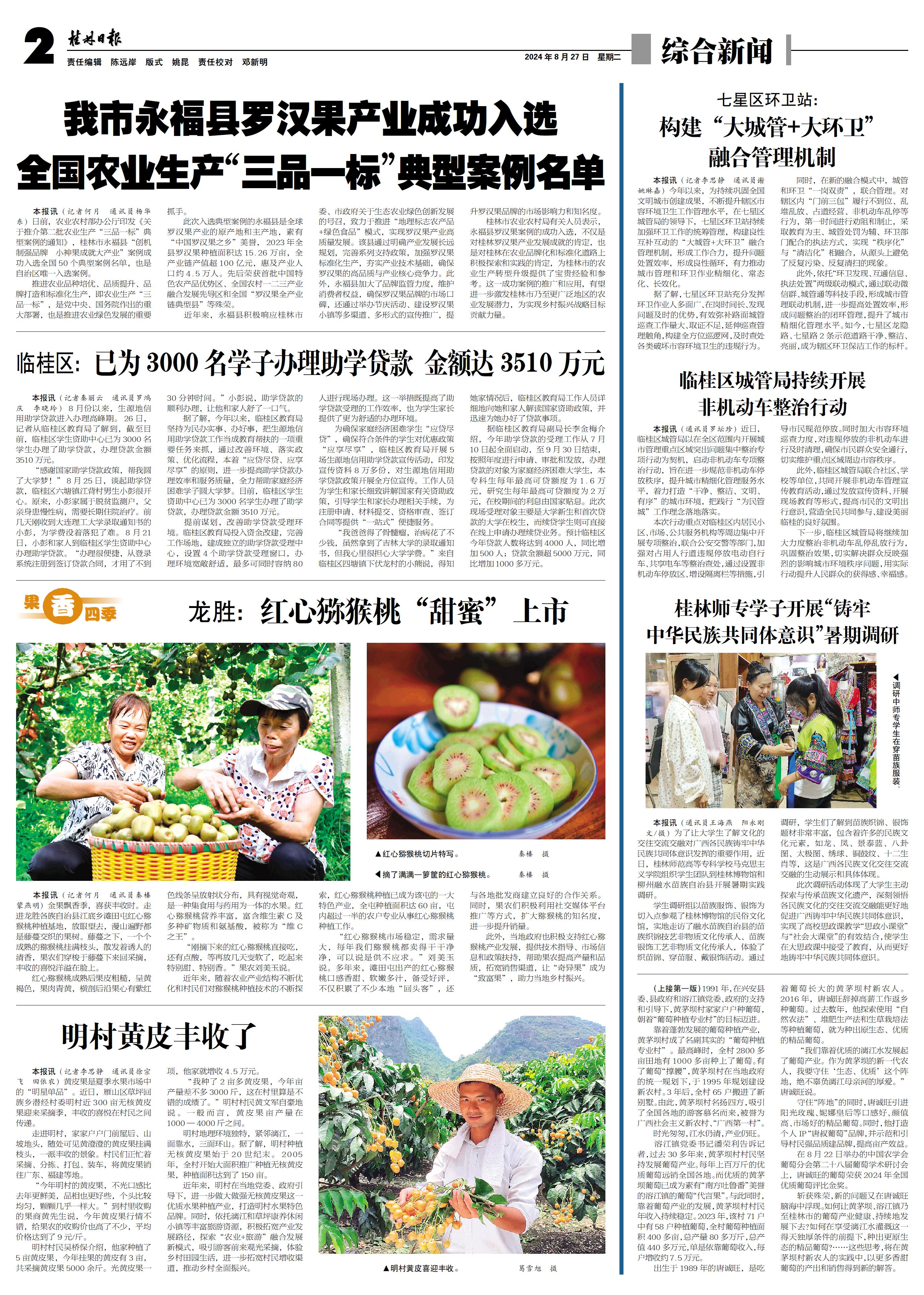 本报讯(记者李思静 通讯员谢姚琳嘉)今年以来,为持续巩固全国文明城市创建成果,不断提升辖区市容环境卫生工作管理水平,在七星区城管局的领导下,七星区环卫站持续加强环卫工作的统筹管理,构建良性互补互动的“大城管+大环卫”融合管理机制,形成工作合力,提升问题处置效率,形成良性循环,有力推动城市管理和环卫作业精细化、常态化、长效化。
