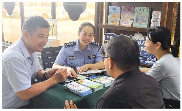 “警务联络员”为来桂外籍华人介绍警企服务站的服务事项。