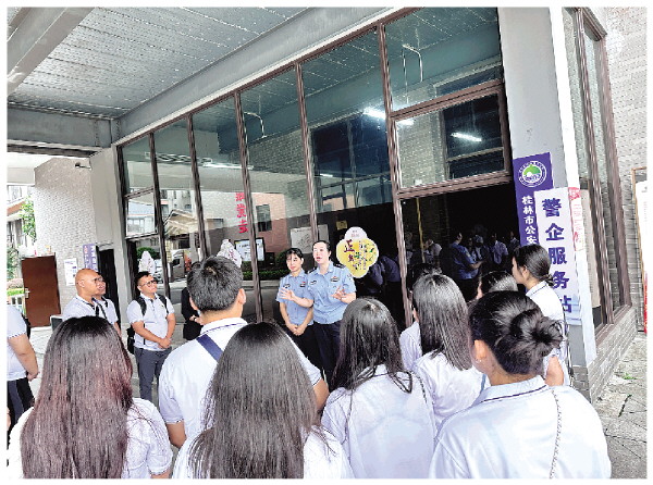 2024年8月13日,警企服务站工作人员为海外菁英华裔青少年桂林历史文化体验营师生讲授出入境知识。