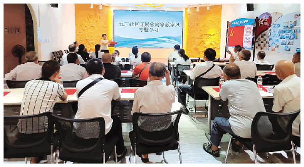 近年来,灵川镇五厂社区积极探索“党建引领+文明实践”的工作模式,通过常态化的“三会一课”学习,将“移风易俗 破陈规陋习”及树立良好家风家教的观念驻扎在居民群众的心中;通过制定居民“文明公约”、开展“清洁家园”“垃圾分类”的文明实践志愿服务活动提高广大居民环保意识;通过下小区张贴通告和微信宣传形式,倡导居民在清明节、中元节不放鞭炮少放鞭炮,提倡网上祭奠的新形式表达追思。同时,通过深入开展各类“文艺汇演”等宣传形式,不断壮大志愿服务队伍,以此提高大家对文明新风的关注度,督促大家重视自我文明行为和良好习惯养成,从而形成人人参与、人人关注的良好局面。
