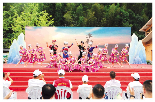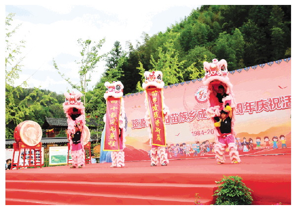 ◥载歌载舞庆祝车田苗族乡成立四十周年。