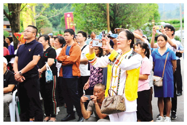 来到石山底屯,记者发现村里的树荫下、小溪边聚集着前来观看庆祝活动的村民,他们三三两两聚集在一起,欢声笑语久久不息。