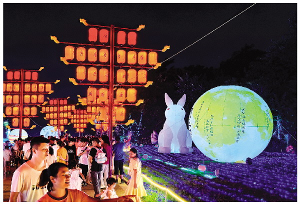 訾洲公园举办的“桂林彩灯大世界”大型国潮主题灯会营造了浓厚的中秋节氛围。李腾钊 摄