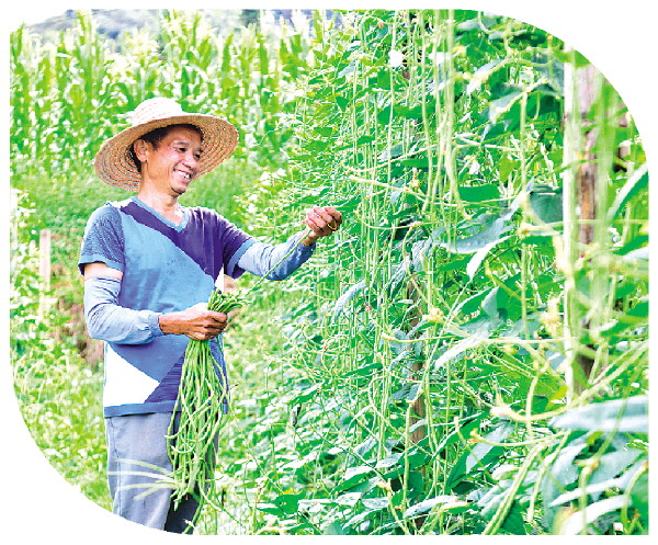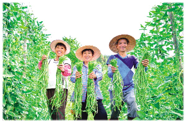 “豆角种植周期短、投资少、高产量,经济效益好,市场前景十分可观。平岭村气候温差大,开花多,坐果率高,豆角的口感也更脆,加上气候好,病虫害少,非常适合种植豆角。”说起种豆角的原因,源泽轩农业专业合作社负责人潘庭彪打开了“话匣子”。潘庭彪从事农业多年,积累了丰富的种植经验,他看中了家乡得天独厚的自然环境和市场发展前景,将豆角这一产业引进家乡,给当地农户试种。在豆角种植基地,农户们穿梭于豆角架之间,挑选采摘成熟的豆角,随后系绳、捆扎,忙得不亦乐乎。