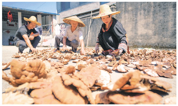 □本报记者李忠波 通讯员黄勇丹 吴贞珍 文/摄 秋分已至,高山灵芝喜迎丰收。在灵川县的高山半高山地区,一片片郁郁葱葱的林下,村民们精心种植的高山林下灵芝长势喜人。 9月24日,记者来到兰田瑶族乡兰田村委新寨村,只见村民们正忙碌地采收、晾晒灵芝,随后装车外运供应火热的市场。 “这是今年采收的第二茬赤灵芝,7月份就已经收过一次了。”村民陈龙化满脸喜悦地说道。今年,她家种植了100多亩赤灵芝,亩产值高达近5万元。2023年,在广西师范大学生命科学学院技术团队的助力下,她流转了10多亩山林,大胆尝试林下试种赤林芝,没想到一举成功。 兰田瑶族乡地处高海拔区域,野生食用菌物种丰富多样,特别适合发展林下产业。这里原生态林下种植的灵芝,管理相对粗放,却有着极高的品质和良好的效益。“我们村在漓江上游,紧邻青狮潭水库,森林覆盖率高,生态环境好。”陈龙化自豪地说。 44岁的村民韦勇刚曾是一名脱贫户,如今在陈龙化的灵芝种植基地担任场长。他对灵芝的生长习性可谓了如指掌:“赤灵芝的生长发育分为两个阶段,先是菌丝生长期,接着是子实体生长阶段,而灵芝子实体的生长又可分为菌蕾期、开片期和成熟期。”现在,他在基地稳定务工,每月能有4500元的收入。像韦勇刚这样常年在基地务工的脱贫户还有七八位。 近年来,兰田瑶族乡在推进乡村振兴的道路上大步前行,通过大力发展灵芝等特色产业,让当地农业产业成功实现从传统到特色、从单一到多元、从“输血”到“造血”的华丽转变。灵芝种植的成功,也带动了灵芝产业向多样化迈进,陆续开发出灵芝孢子油、破壁灵芝孢子粉、灵芝茶、灵芝酒、灵芝盆景等丰富产品。 兰田瑶族乡党委书记陈丽表示,将充分利用当地优越的林地资源,采用“党支部+基地+农户”的发展模式,引领群众大力发展林下灵芝种植产业,拓宽群众增收渠道,实现生态保护与经济效益的双丰收。 据悉,灵川县森林资源丰富,人工栽培灵芝主要以林下仿野生种植为主,品种有赤灵芝和紫灵芝。灵芝年栽培面积稳定在1700亩左右,鲜品产量1120吨,产值高达1.23亿元。当地专门从事灵芝种植、加工的新型经营主体有12家,注册了“大野神芝”“丰茂源”“紫灵”“安太”“瑶山”等灵芝品牌。其中,桂林大野领御生物科技有限公司的灵芝产品已先后获得中国有机认证、欧盟有机认证。