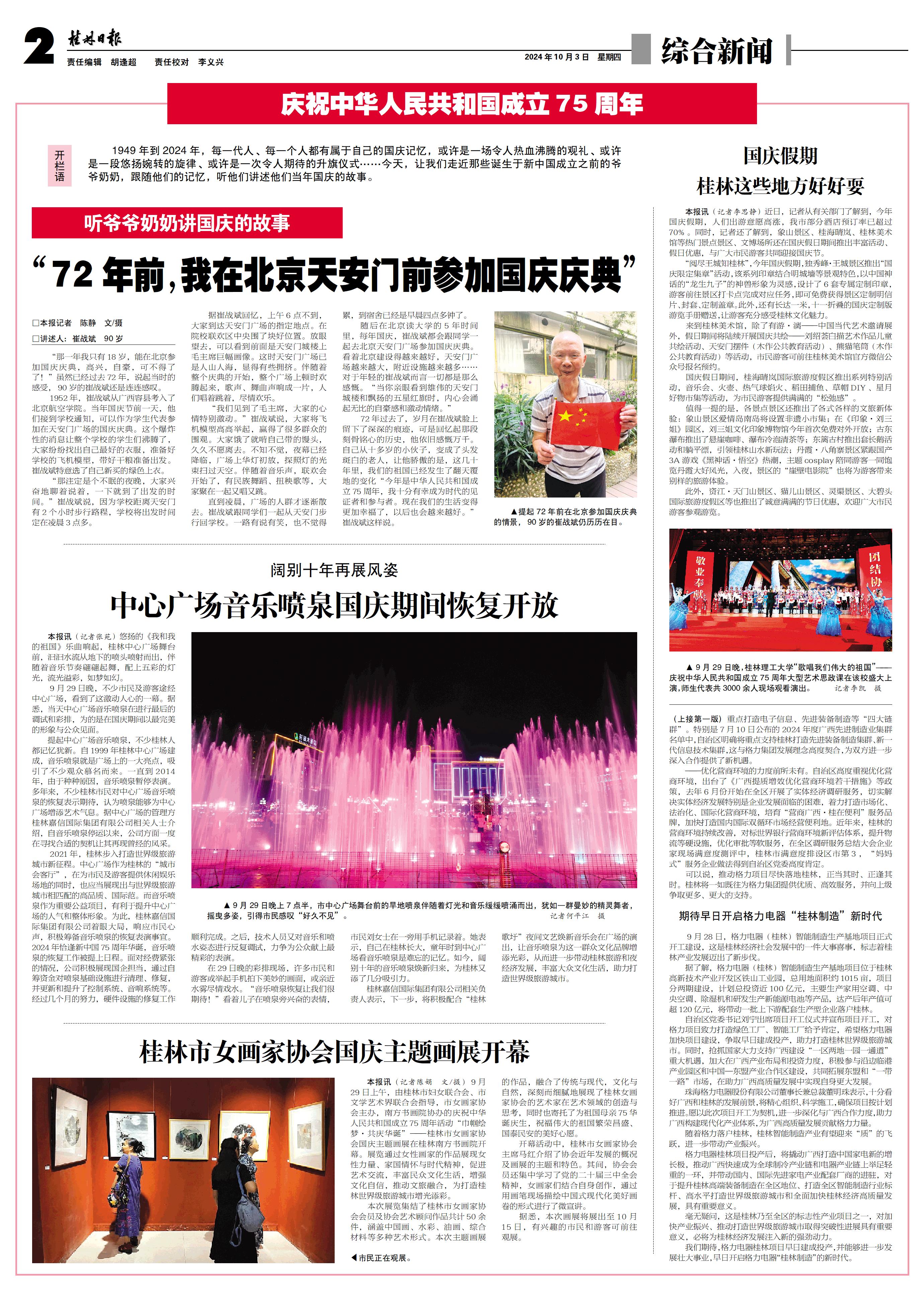 本报讯(记者陈娟 文/摄)9月29日上午,由桂林市妇女联合会、市文学艺术界联合会指导,市女画家协会主办,南方书画院协办的庆祝中华人民共和国成立75周年活动“巾帼绘梦·共庆华诞”——桂林市女画家协会国庆主题画展在桂林南方书画院开幕。展览通过女性画家的作品展现女性力量、家国情怀与时代精神,促进艺术交流,丰富民众文化生活,增强文化自信,推动文旅融合,为打造桂林世界级旅游城市增光添彩。