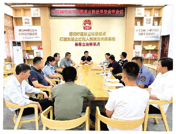 开展“小切口”地方立法工作,被全国人大《法制工作简报》专题刊发,打造了地方立法工作“桂林样板”。图为大圩镇基层立法联系点召开立法相关会议。 (市人大常委会供图)