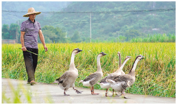□本报记者秦丽云 通讯员黄勇丹 胡艺 文/摄 金秋时节,晚稻飘香。在灵川县定江镇法源村,村民们在忙着抢收晚稻之际,都会不约而同地想到同一道美味佳肴——稻香鹅,因为这道佳肴必备的材料之一就是稻草。而刚刚收割、脱粒后的稻草,深藏着稻谷的清香,并将以一种独特的方式,赋予鹅肉以独特的味道。 近期,在灵川县定江镇广袤的农田里,连片的晚稻逐渐变得金黄。低垂的稻穗,又在向秋风轻轻诉说着一年的好“丰景”。法源村“60后”村民秦连发赶着一群鹅,走在稻谷飘香的田间。看着那些大鹅大摇大摆走路的模样,不少路人纷纷称赞“这鹅养得好”。秦连发听着,脸上漾满了笑意。一个酝酿了近一年的计划,将通过这群精心喂养了近一年的大鹅,还有刚收割的晚稻,共同完成。 挑选一只10多斤的肥硕大鹅后,秦连发和家人分头忙碌起来。两个儿媳妇负责拔毛,妻子秦玉兰负责去稻田抱稻草,秦连发自己则负责准备各种配料。 秦玉兰邀请一位乡亲,前往村后的田野。在那里,一块刚收割的稻田里,正晒着金黄的草垛。她俩从草垛中挑选了一番,最终抱出两捆干燥又紧实的稻草。 等稻草放到后院,大鹅已被处理干净。烹制稻香鹅最为关键的步骤将要进行。秦连发先用稻草均匀地包裹着整只鹅,再用火将其熏制。经过10多分钟的烟熏后,鹅肉和稻草在烟与火的交融中,产生出一股独特的香味。抹去稻草灰,再用清水洗净大鹅,鹅肉呈现出稻草的黄色。 切块后的鹅肉装入盆中,其他早已准备妥当的食材、配料等正等待上场。秦连发烧起猛火,趁着热油吱吱作响的功夫,把之前备好的老姜、沙姜、蒜米,还有今年刚晒干的红辣椒倒入锅中,持续翻炒。在配料们就着猛火尽情散发出的香气中,鹅肉被倒入锅中。持续的翻炒,让鹅肉与配料尽情交融。 “其实,稻香鹅的烹饪方法很简单,只要鹅肉好,配料可以很简单。”秦连发说,这是他在过去20多年的生活中总结出的经验。有些配料的选择,秦连发因地制宜,就地取材。例如,自家种、自家晒的红辣椒,还有本村酿制米酒中的头道酒。 头道酒,指的是酒头,是刚蒸馏时取的一些浓度高、香味物质丰富、刺激感强的酒,一般用于烹饪调味。秦连发说,头道酒选择38度左右最佳,度数太高,容易让食材有苦味;度数过低,则激发不出食材中的独特味道。此外,头道酒倒入的时间也有讲究,需要在鹅肉入锅数分钟内倒入,并搅拌均匀。如此独特的烹饪方式,才能将鹅肉的香味一点点逼出。 盖上锅盖,大火猛煮约半个小时后,鹅肉香、稻香以及各种配料的香,融合一起,争相冲出。接着,改小火继续煮20分钟左右。在出锅前约5分钟,秦连发拿出了一瓶桂林豆腐乳,倒少许乳块和汤汁入锅中,厨房中的鹅肉香味越发浓郁。 热气腾腾的稻香鹅出锅,随即被端上了院中树下的大圆桌,客人、家人一起闻香而坐。看着金黄多汁、皮薄肉厚的鹅肉,大家言语中因一道美食的诱惑而显得格外欢腾。碗筷在手,金黄肥美的鹅肉入口,顿感味道醇厚、不柴不腻。与此同时,一股熟悉的稻香随着咀嚼的进行,渐渐在口中弥漫,记忆深处的田园稻香涌上心头,心里又添了一份乐享丰收的欢喜。 看着大家吃得欢喜,秦连发的脸上再次挂满了笑意。曾经,他和妻子每年种植十来亩的水稻,每年都会在稻子丰收的时节,为家人做上一顿稻香鹅,犒劳辛劳了大半年的自己和家人。这些年,他和妻子在村里还经营着一个农家乐,不少食客远道而来,就为品尝一次稻香鹅。像中国所有勤劳的农人一样,秦连发在农田中耕耘、分享稻香鹅这道充满田园气息的佳肴,迎接收获、分享欢喜,品味更令人回味的生活滋味。