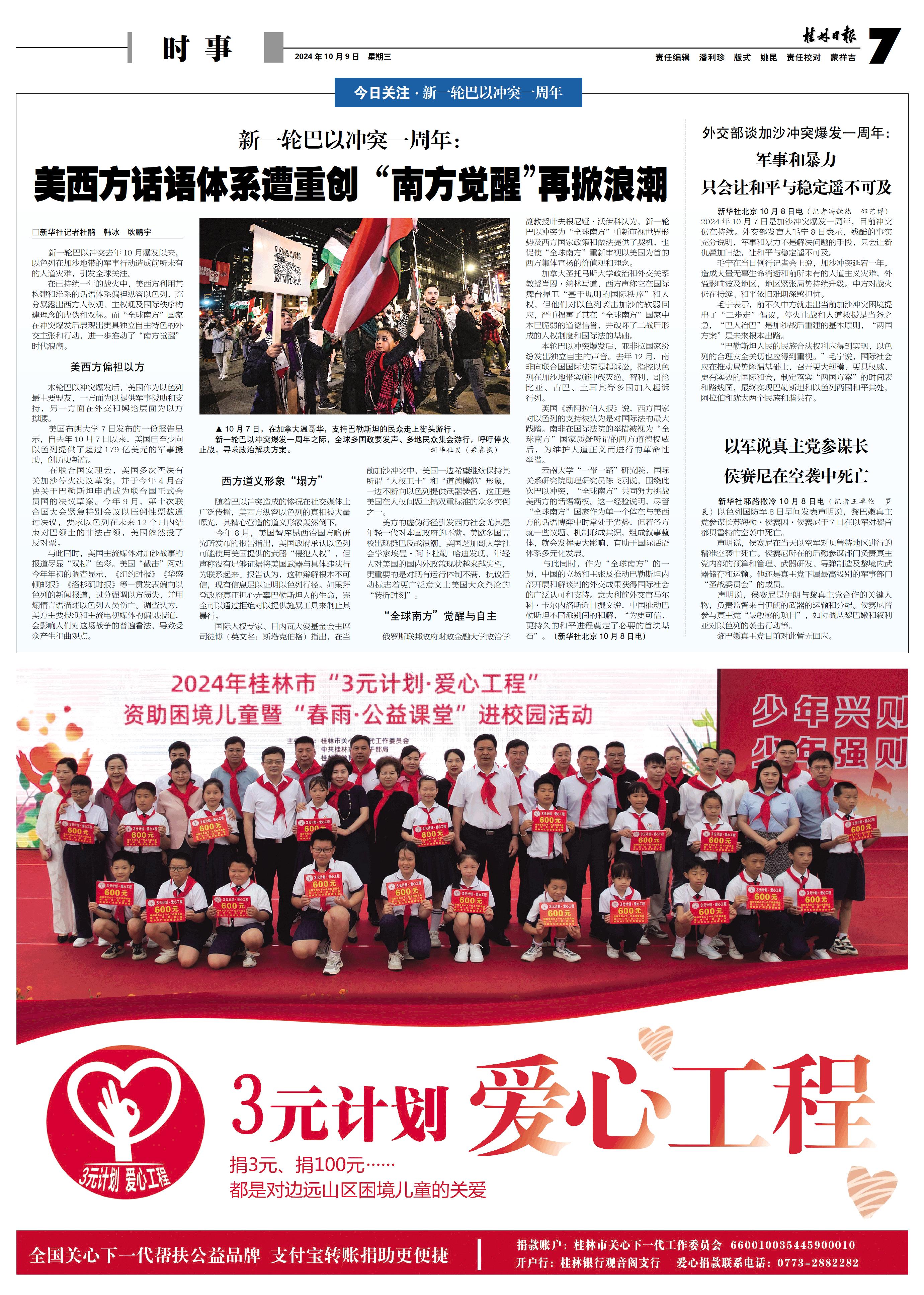 新华社北京10月8日电(记者冯歆然 邵艺博)2024年10月7日是加沙冲突爆发一周年,目前冲突仍在持续。外交部发言人毛宁8日表示,残酷的事实充分说明,军事和暴力不是解决问题的手段,只会让新仇叠加旧怨,让和平与稳定遥不可及。